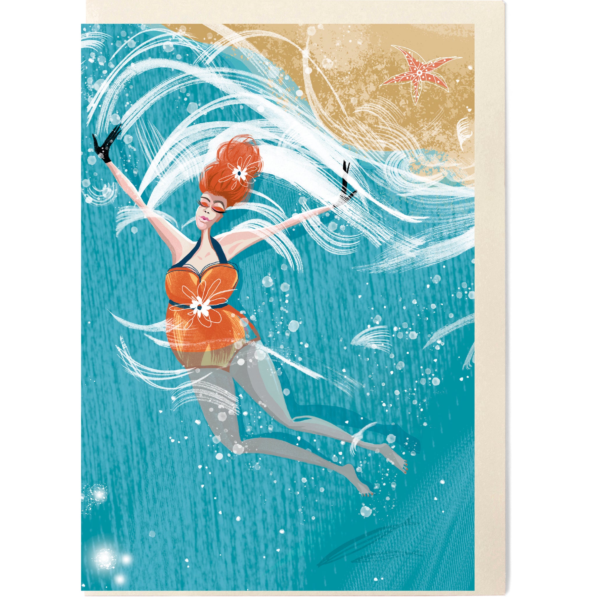 'AMBER SHORE' card design from the series 'Swim Wild & Free' – A collection celebrates the power of outdoor wild cold water swimming for our soul and good health. Take a dip in the wild waters today – and you will never look back.