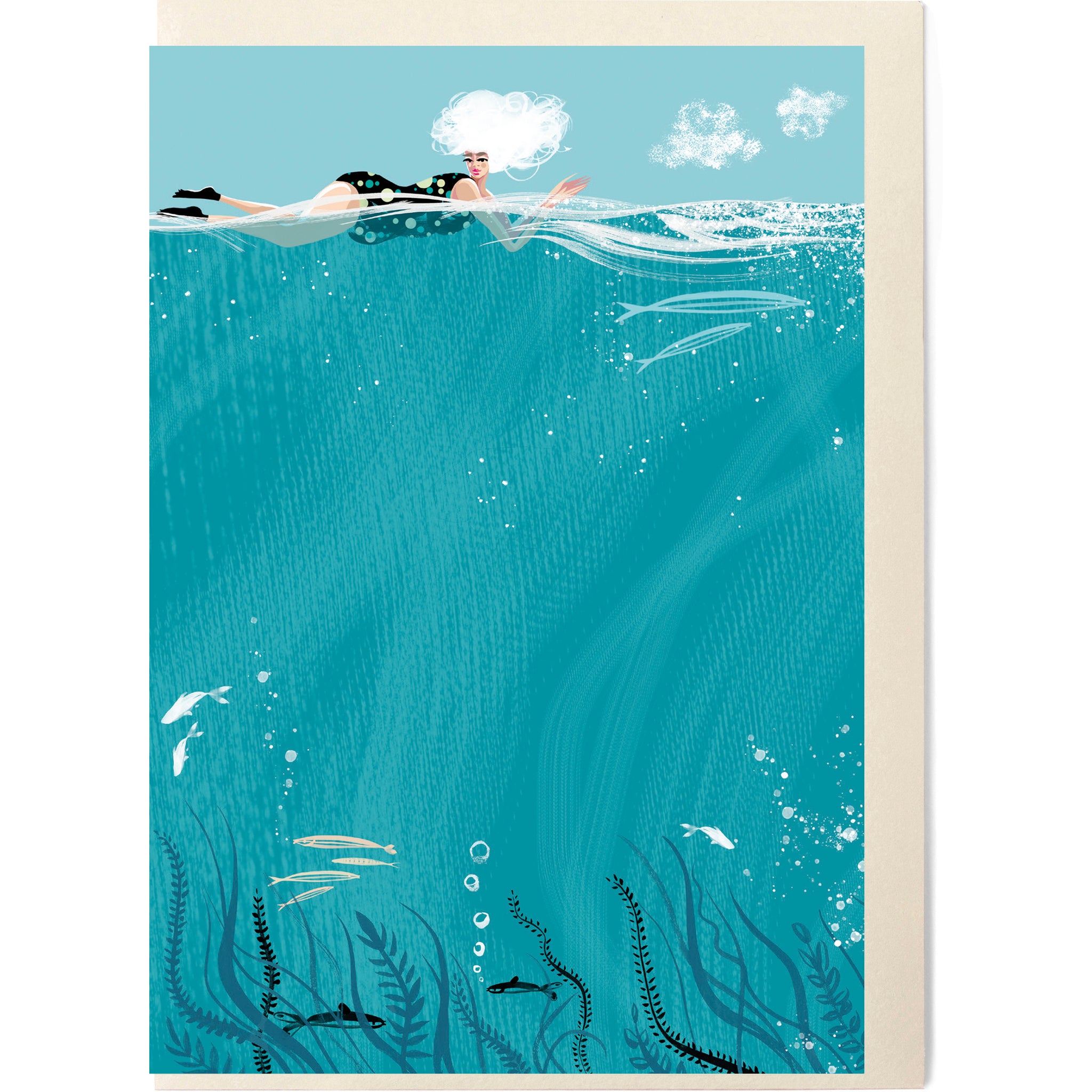 Card design 'Ocean Top', from the latest in the series 'Swim Wild & Free' –A collection celebrates the power of outdoor wild cold water swimming for our soul and good health. Take a dip in the wild waters today – and you will never look back.