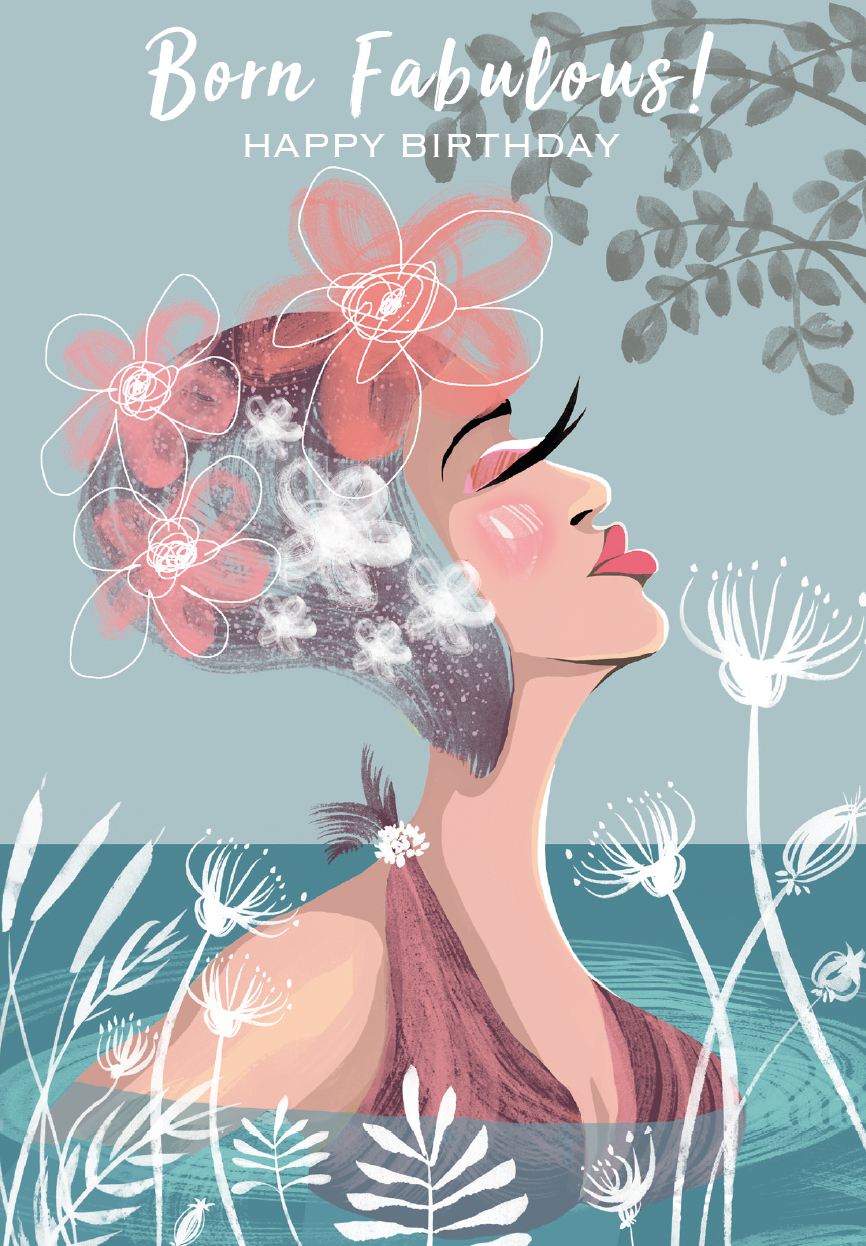 HAPPY BIRTHDAY 'COOL SUMMER DIP' card design from the series 'Swim Wild & Free' –A collection celebrates the power of outdoor wild cold water swimming for our soul and good health. Take a dip in the wild waters today – and you will never look back.