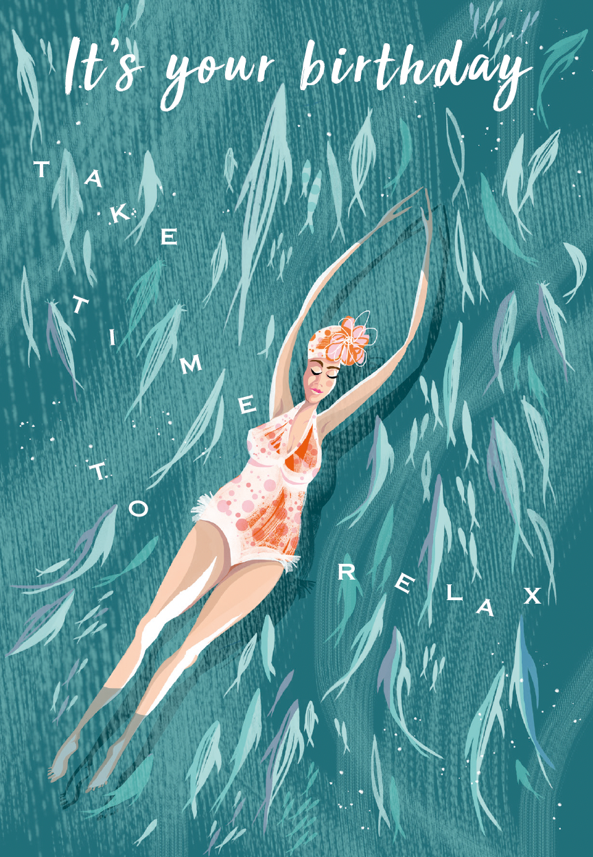 HAPPY BIRTHDAY 'SHOAL' card design from the series 'Swim Wild & Free' –A collection celebrates the power of outdoor wild cold water swimming for our soul and good health. Take a dip in the wild waters today – and you will never look back.