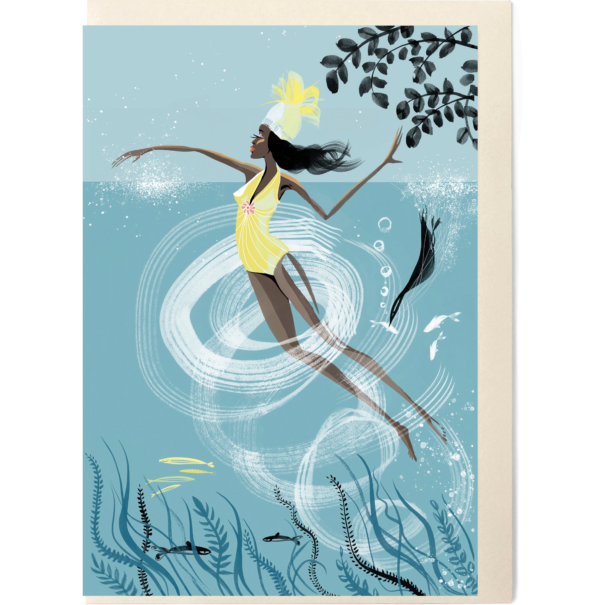 'EBB & FLOW' card design from the series 'Swim Wild & Free' – A collection celebrates the power of outdoor wild cold water swimming for our soul and good health. Take a dip in the wild waters today – and you will never look back.